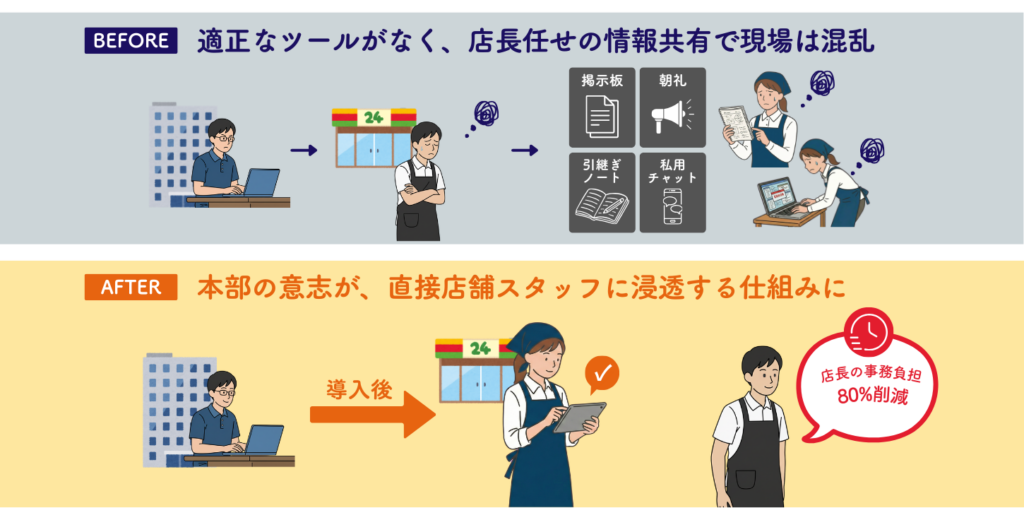 製品・サービス スタッフサイネージ® 紙の掲示板、まだ使っていませんか? 現場の“伝わらない”をなくす、ノンデスクワーカー専用の掲示板システム スタッフサイネージは、工場・店舗など、PCを持たずに働く「ノンデスクワーカー」のための 情報共有DXシステムです。紙の貼り替えや朝礼での伝達不足といった現場特有の悩みを、1台の共有タッチパネルで解消。 「現場スタッフへ直結した配信」と「誰が読んだか」の既読管理で、組織の風通しを劇的に改善します。 こんな時に使えます ・新商品、季節のイベントによる販促施策 ・勤務シフト表の共有 ・お客様からの伝言 ・生産目標/実績(生産システムと連携) ・温度/湿度など(センシング機器と連携) ・生産マニュアルの閲覧 ・当日のベッド稼働率・勉強会のお知らせ ・新スタッフの紹介 ・救急車の搬送状況 ノンデスクワーカの情報共有の課題 現状(一例) 朝礼で一斉に周知 紙の掲示物の既読管理をハンコで行う 共有PCでメールの確認を行う 連絡ノートで回覧/周知 プライベートのスマホでコミュニケーションツールを利用 情報を配信する人の課題 情報を確認する人の課題 スタッフサイネージでらくらく解決! 現場ではお知らせを確認するだけ お知らせの作成&配信も簡単 ISMSに関する第三者認証 株式会社テクノフェイスは、情報セキュリティマネジメントシステムについて、第三者機関から下記の認証を取得しています。 適用規格JIP-ISMS517-1.0[JIS Q 27017:2016(ISO/IEC 27017:2015)] 認証範囲クラウドサービスプロバイダとして「スタッフサイネージ」の提供、及びクラウドサービスカスタマとして「AWS」の利用におけるISMSクラウドセキュリティマネジメントシステム 【クラウドサービスの種類】 クラウドサービスプロバイダ/クラウドサービスカスタマ 認証番号MSA-IS-191-CL 利用規約 利用規約 お問合せはこちら
